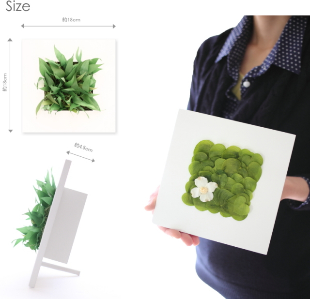 フォトフレームのように、置くだけでたちまちアートな空間の出来上がり。  プリザーブドフラワーギフト/マグリット インテリアグリーン 壁掛け リズミカルに壁面を飾ってみる。昨日とは違った空気が流れる。