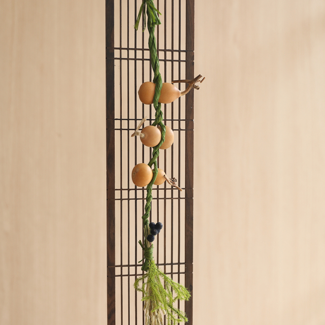 連なる瓢箪は、人と人、日々の暮らしをやさしく結び、 無病息災や繁栄への願いを込めた、縁起を結ぶ伝統のかたち。