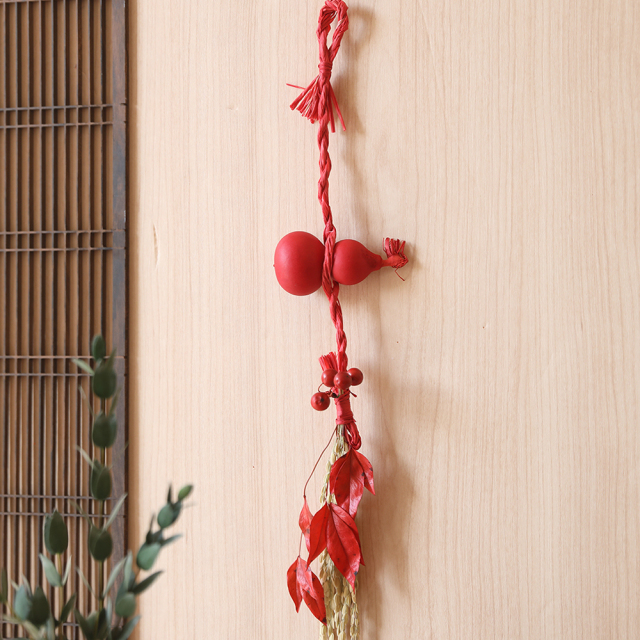 赤いひょうたんが映える、祝い事や節目にふさわしい、福を招く縁起飾り
