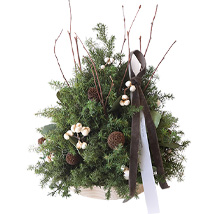 クリスマス花材の杉やヒノキを使った各種アレンジメントがずらり。プリザーブドグリーンで作ったツリーは、小さくても本物のクリスマスツリー!お誕生日プレゼントや新築祝い等、各種プレゼントにも喜ばれています。クリスマステーブルを彩るフラワーアレンジメントも押さえておきたい。