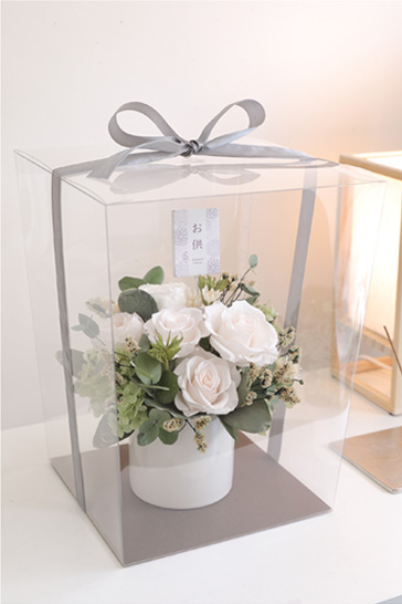 上品で清楚なお花で、優しく癒して差し上げられるよう、心を込めて製作致します。